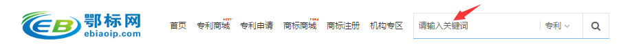 1.通過首頁右上方的搜索欄,輸入關(guān)鍵字的方式搜索專利商標信息,如下圖: