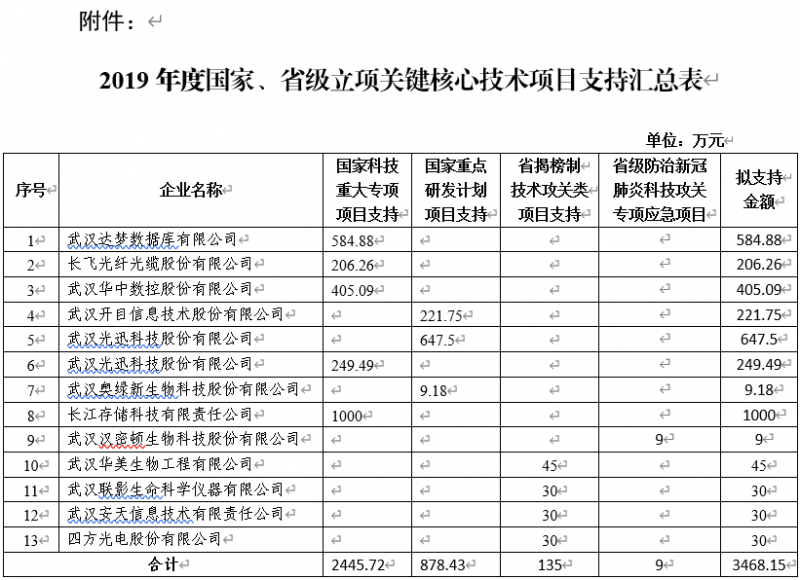 按照《關(guān)于申報東湖高新區(qū)2019年度國家、省級立項關(guān)鍵核心技術(shù)項目支持的通知》要求以及管委會相關(guān)規(guī)定,經(jīng)企業(yè)申報、審核、實地考察等流程,現(xiàn)將支持結(jié)果予以公示,公示期為2020年6月9日-6月15日。如有異議,請于6月15日下午17:00前將書面意見(蓋公司/單位公章)反饋至管委會科創(chuàng)局,逾期不予受理。