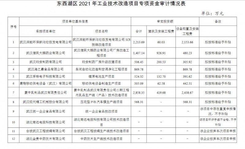 東西湖區(qū)2021年工業(yè)技術(shù)改造專(zhuān)項(xiàng)補(bǔ)貼資金審計(jì)情況公示