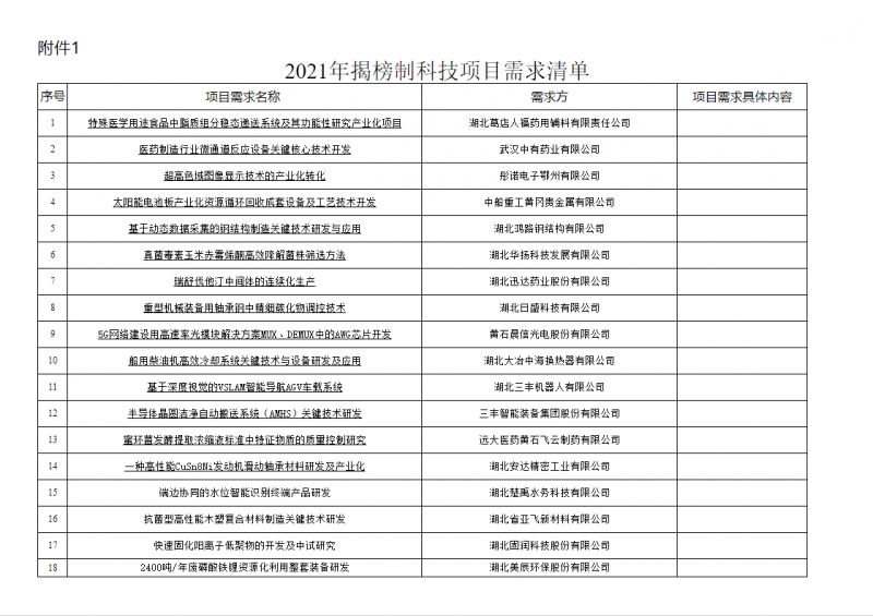 1.2021年揭榜制科技項目需求清單